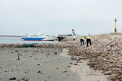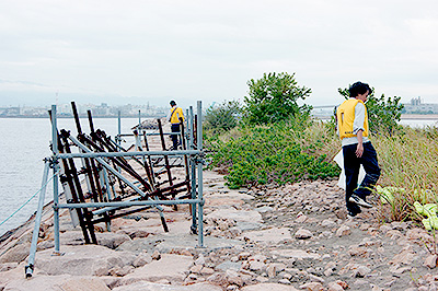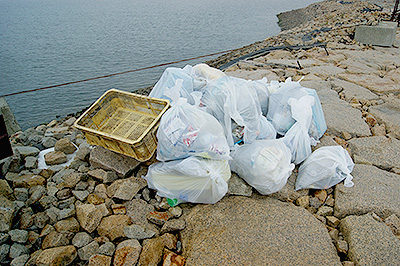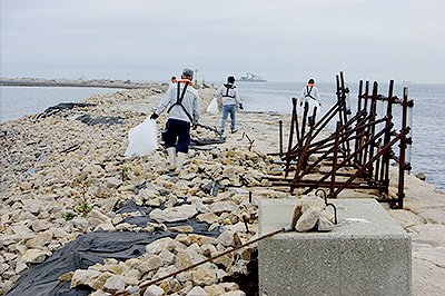小さなビニールごみから網や防波堤に絡まった大きなごみまで清掃しました。