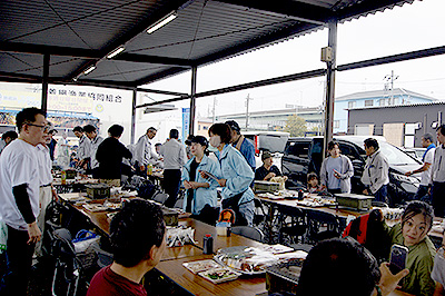 干潟から帰港して昼食の時間です。みんなで美味しいご飯をいただきました。