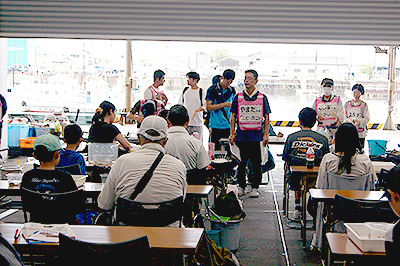 今回は足元と水際に人を配置しながらテントの設置と飲料水や氷の準備をし、参加者に安全に楽しんでいただけるよう対策を取りました。
